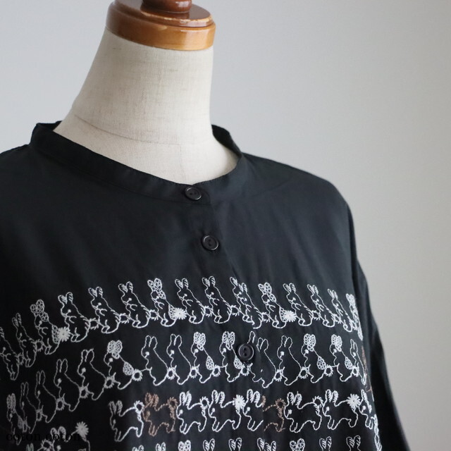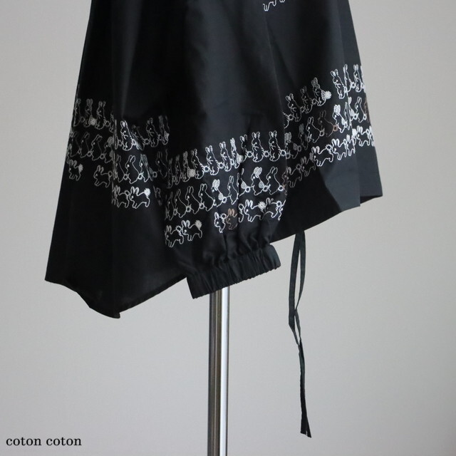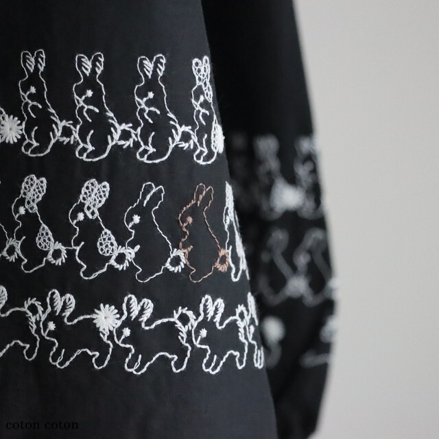 刺繍でえがかれたうさぎはいろいろなポーズ、模様も様々でかわいいデザイン。