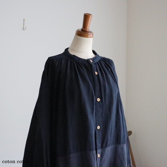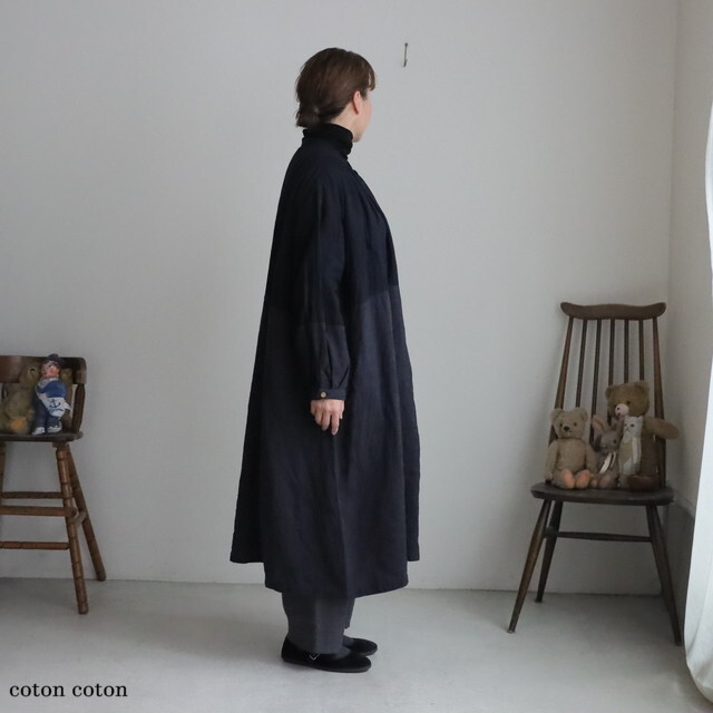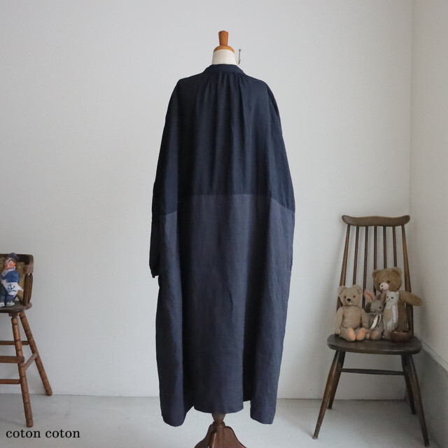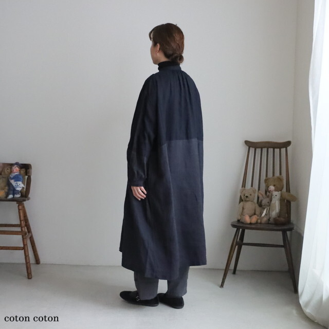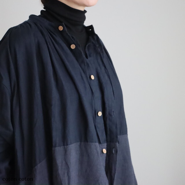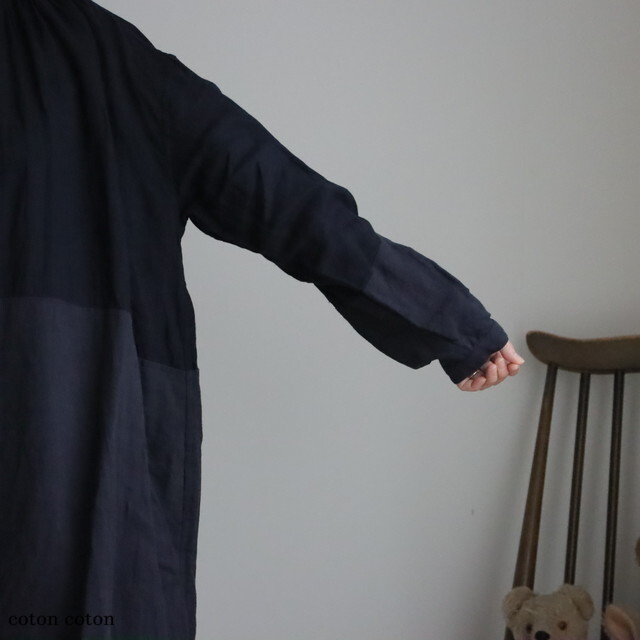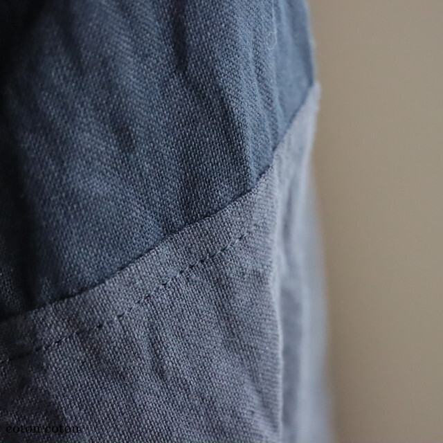 リネンの別生地で切り替えた濃淡がおしゃれです