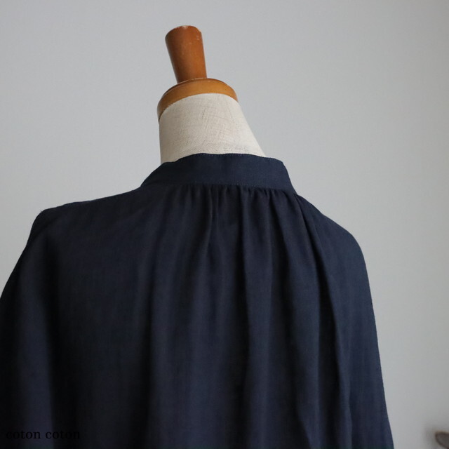 やや厚みのあるリネン100%の平織り生地で、ガーゼのようなソフトな風合いのワンピース。
