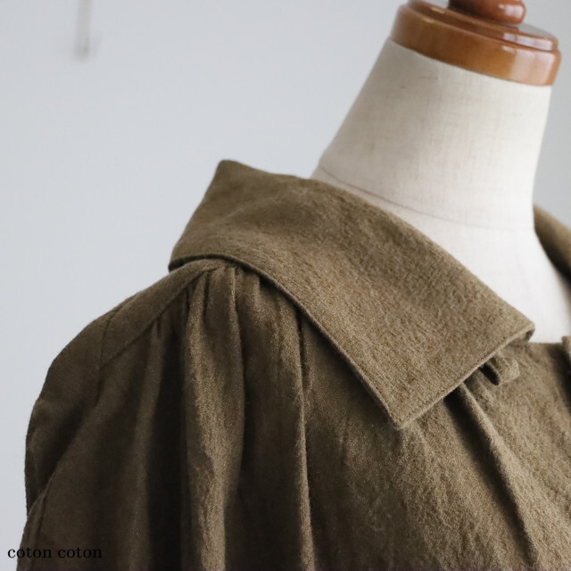 衿下や袖口など、ギャザーやタック使いが魅力です。