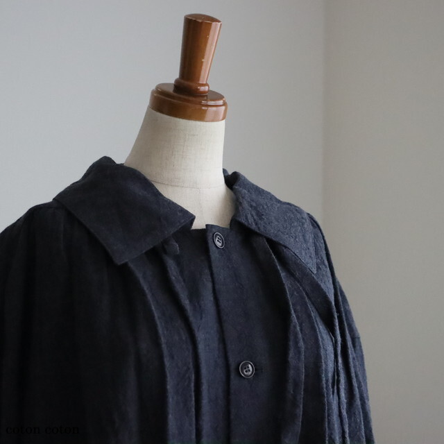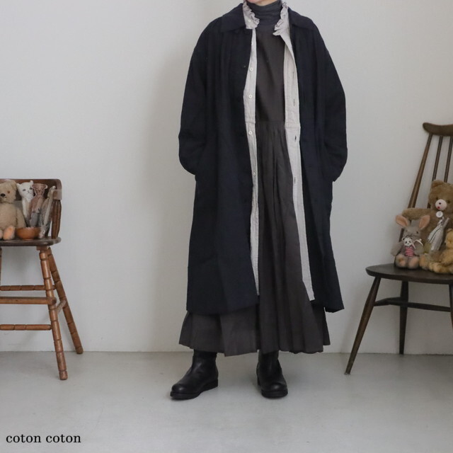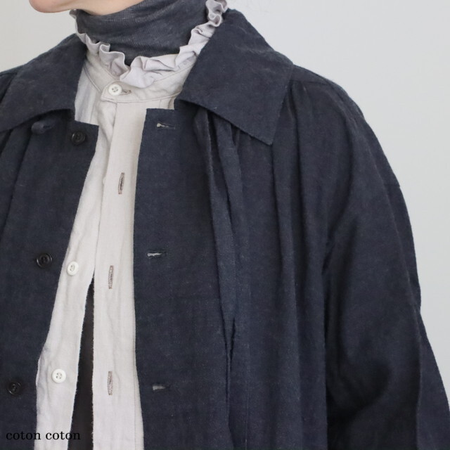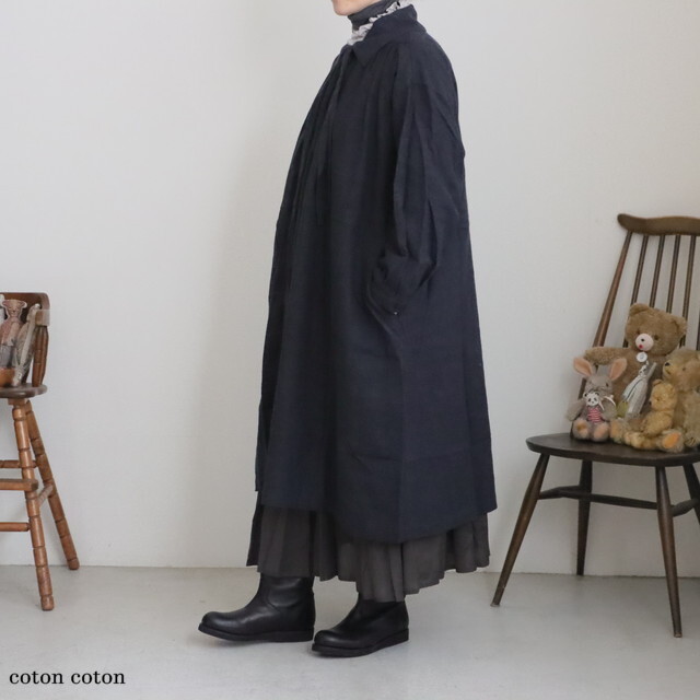 身幅もお袖もたっぷりと余裕があり、中にあたたかなニットなど、たくさん着こんでいただけます。