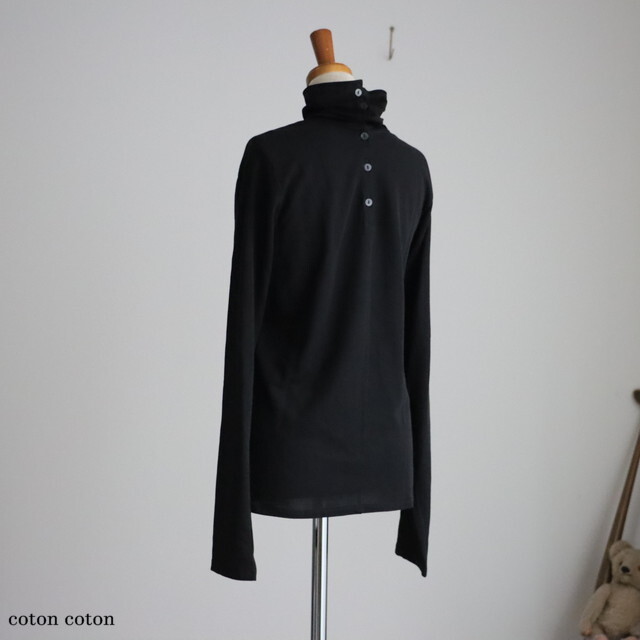 ハイネックの後ろはボタンの仕様で見た目にもおしゃれなインナーです。