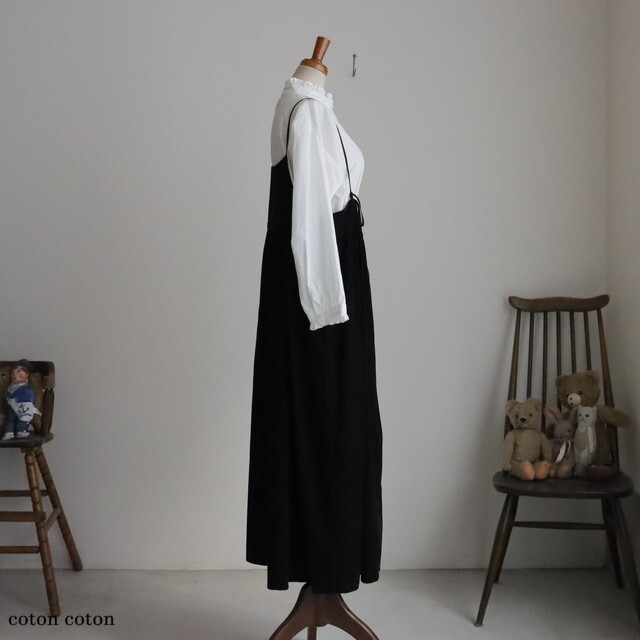 肩紐はリボンで調整できて、身長やコーディネートに合わせていただけます