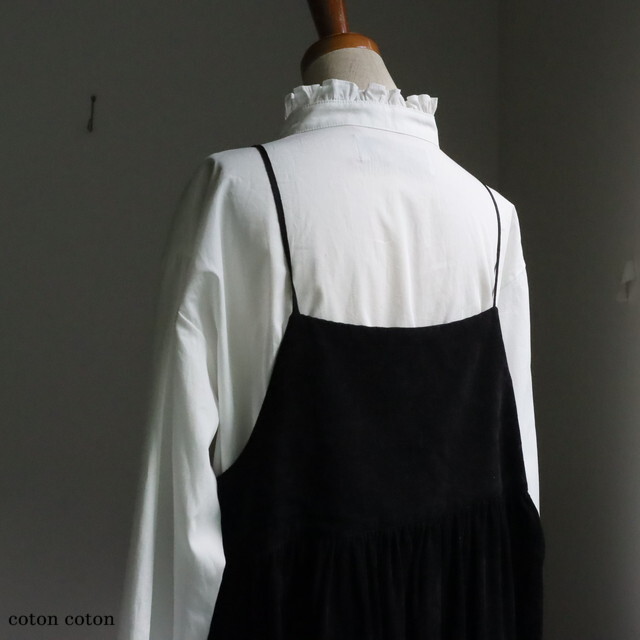 浜松でつくられた、レーヨン混のシャツコール素材のビスチェワンピース。
