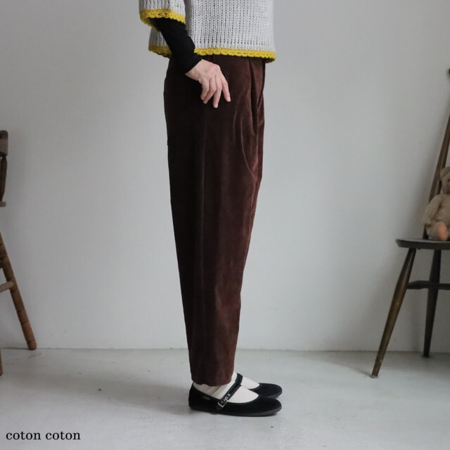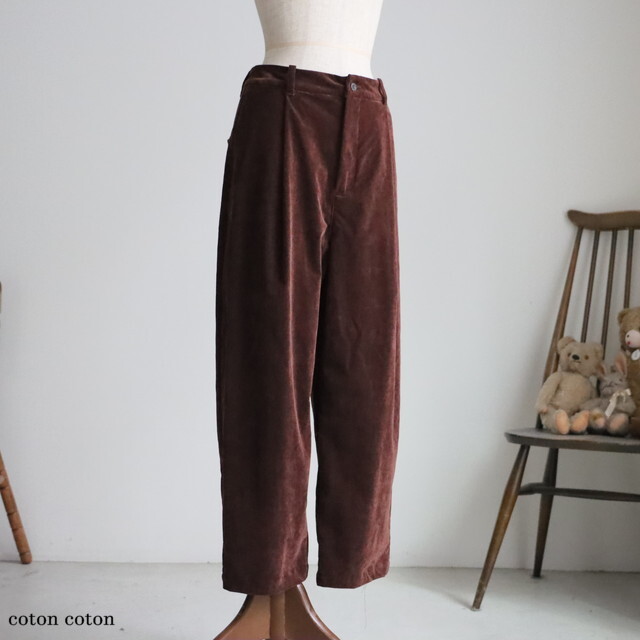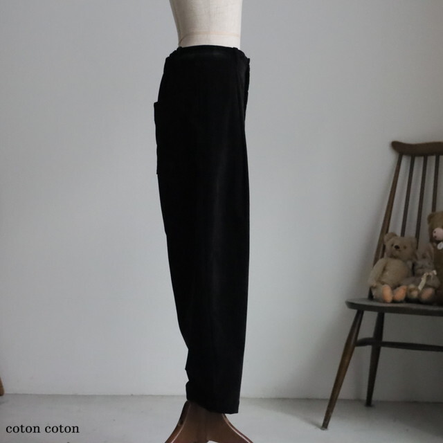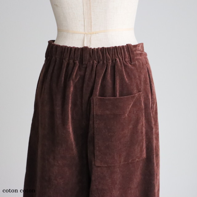 ベロアのような素材感できれい目にもカジュアルにも使えるパンツです
