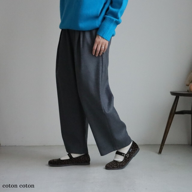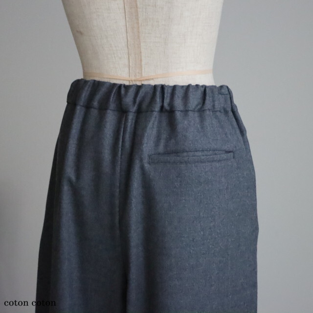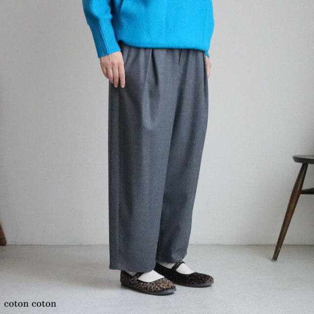 尾州の産地で織り上げた、ウールサキソニー素材のイージーパンツ。