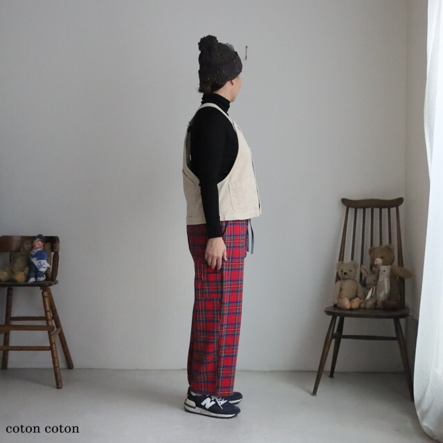 同素材のパンツとのセットアップでオーバーオールのように着てももおすすめです