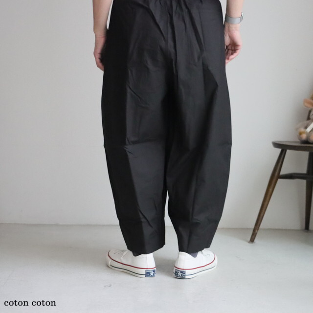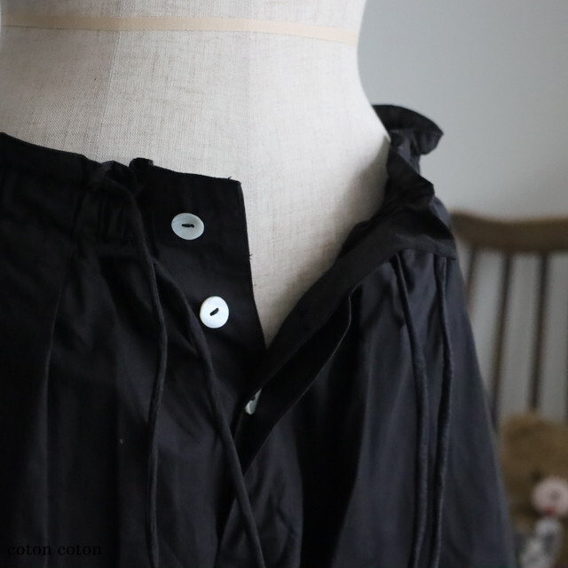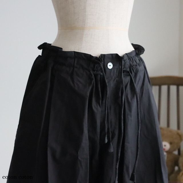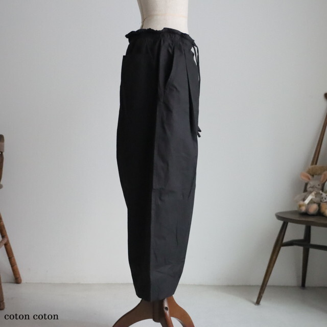 ウエストにはタックがとられ、裾に向かってややすぼまるコクーンシルエットです。