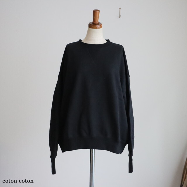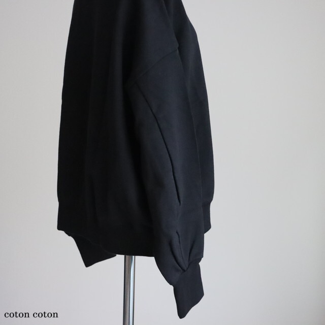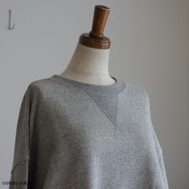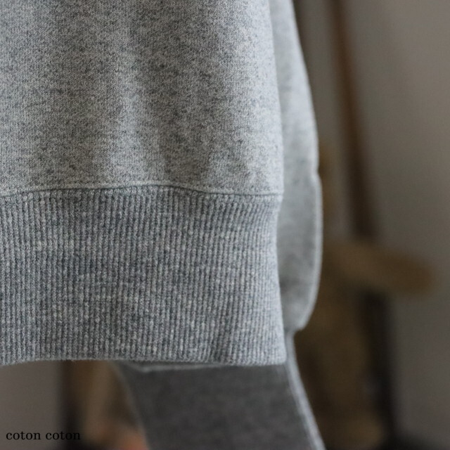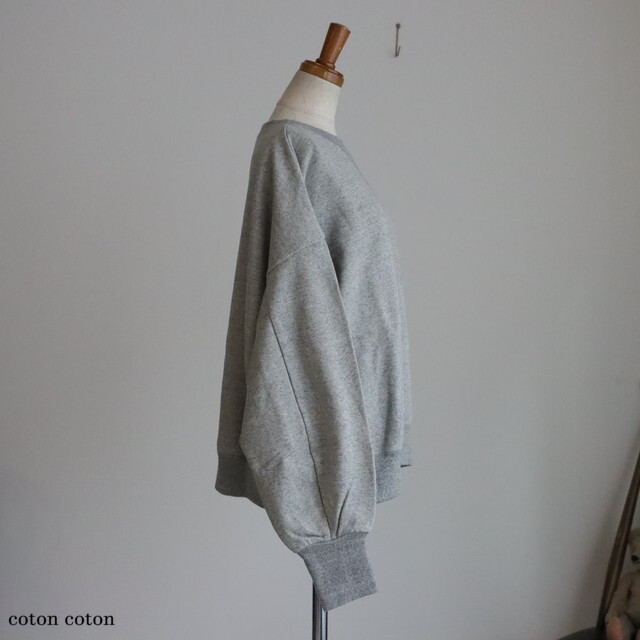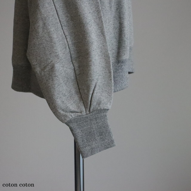 カジュアルな素材感ですが、袖口長めのリブと裾の小さなギャザーが女性らしい印象です
