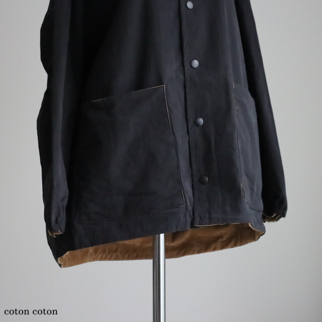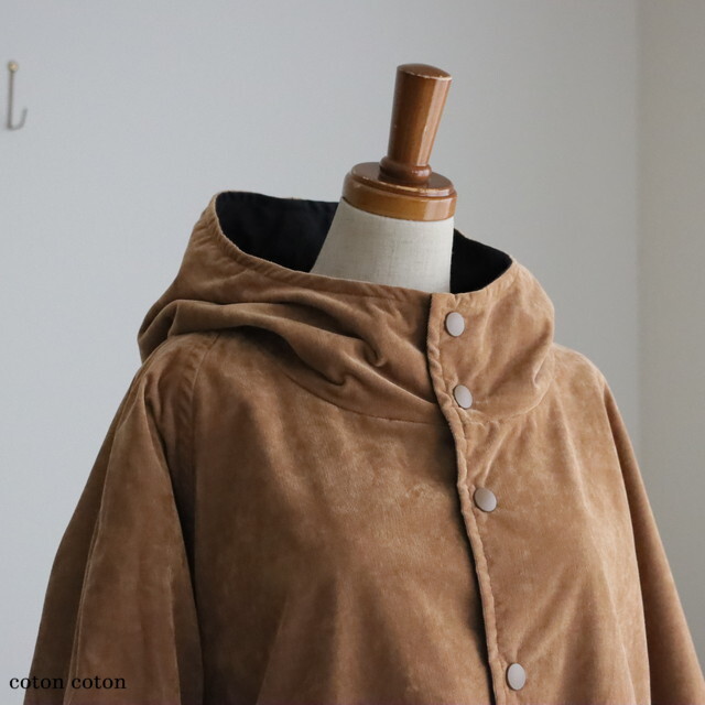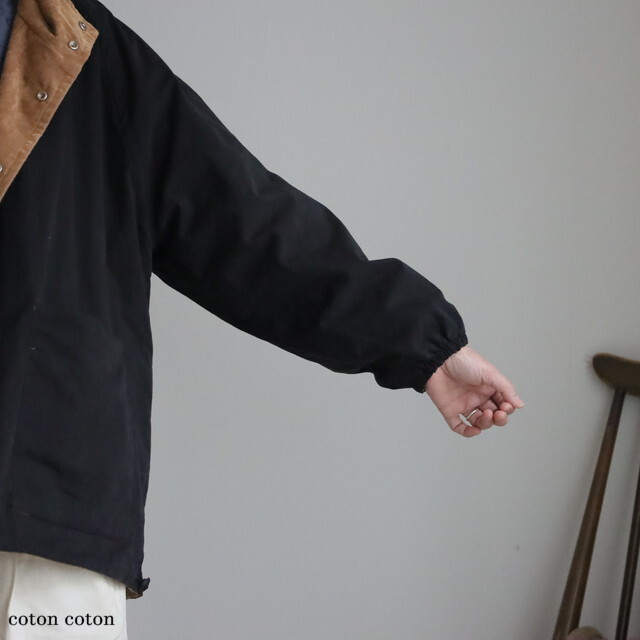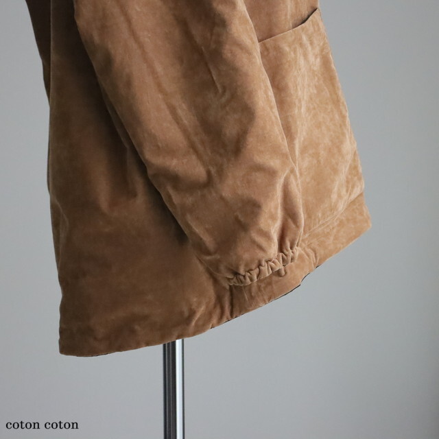 マットな質感の綿ナイロンと、ベロアのような素材のリバーシブル仕様のジャケット