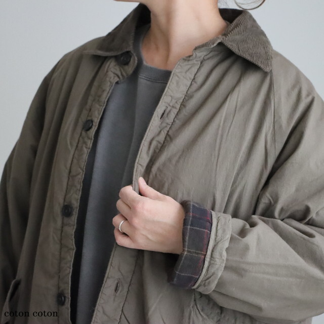 襟にはコーデュロイを使用し、異素材の組み合わせもメリハリが出るデザインがポイントです。