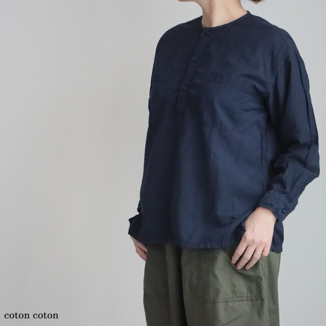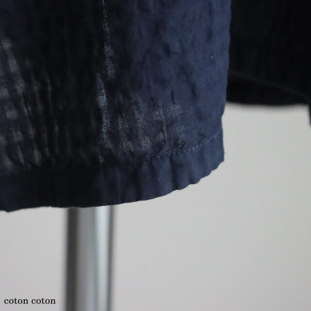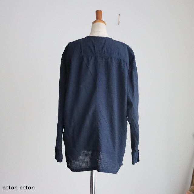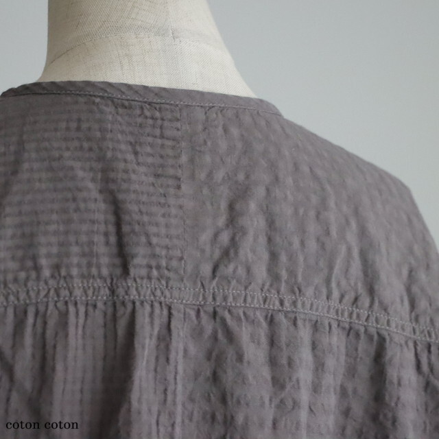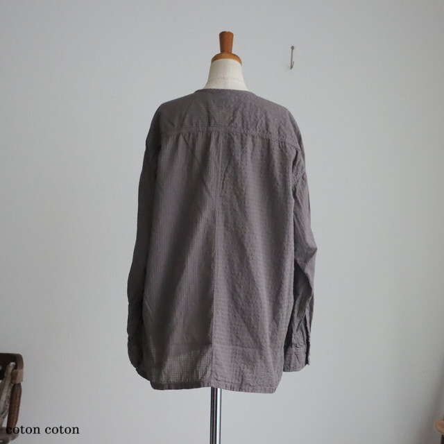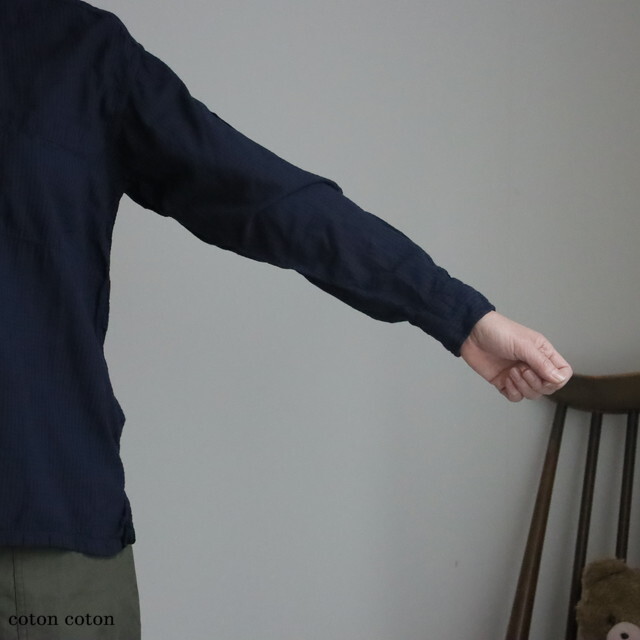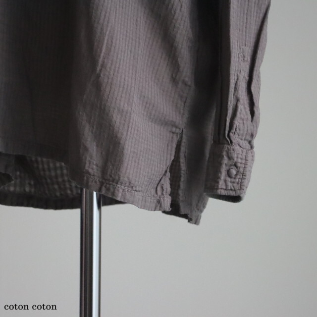 80番手のオーガニックコットンを使用したシアサッカーチェック素材で仕立てられたシャツ