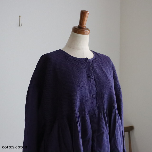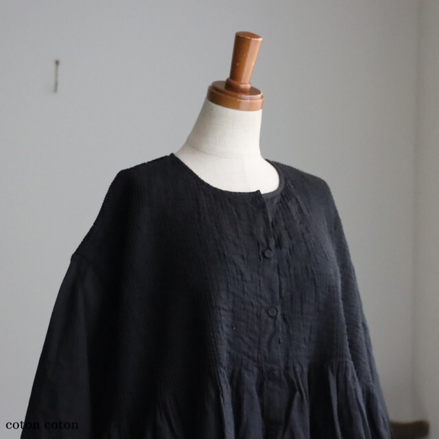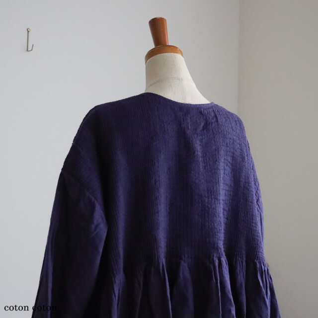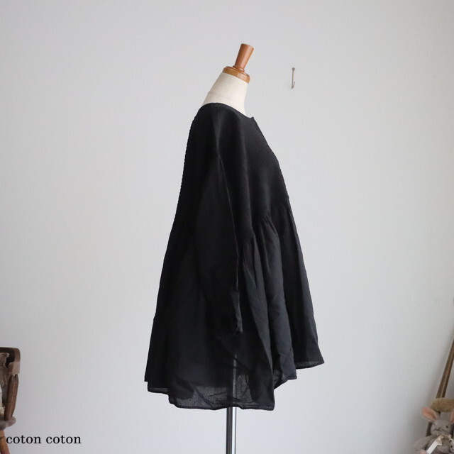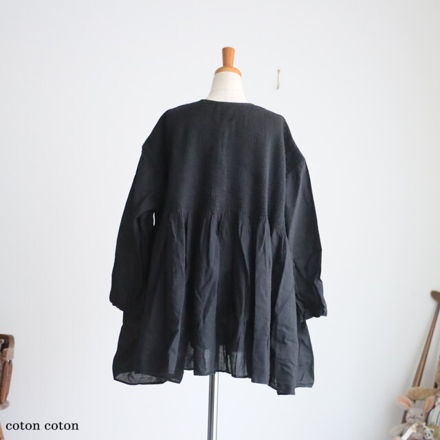 ピンタックから下はギャザーになって、ふわりと自然な落ち感がきれいです。