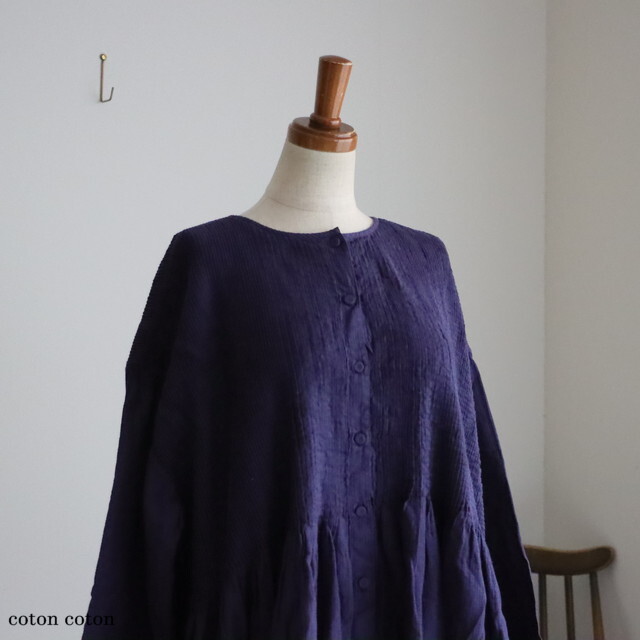 前開きのボタン仕様で羽織りワンピースでレイヤードスタイルもお楽しみいただけます