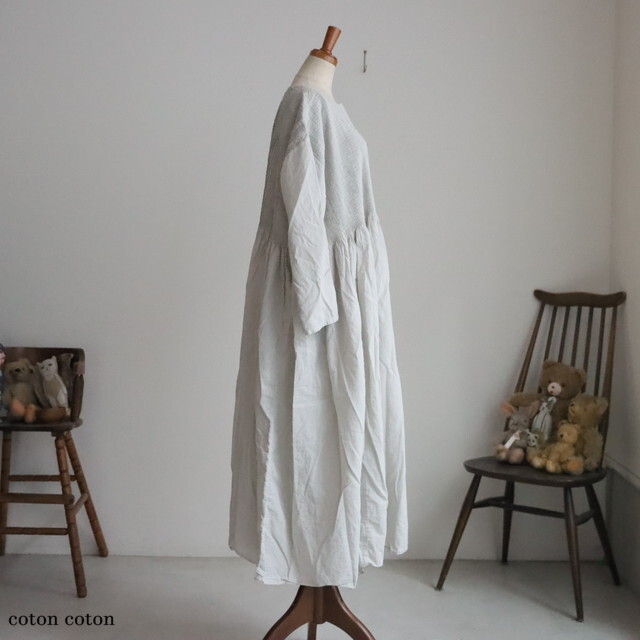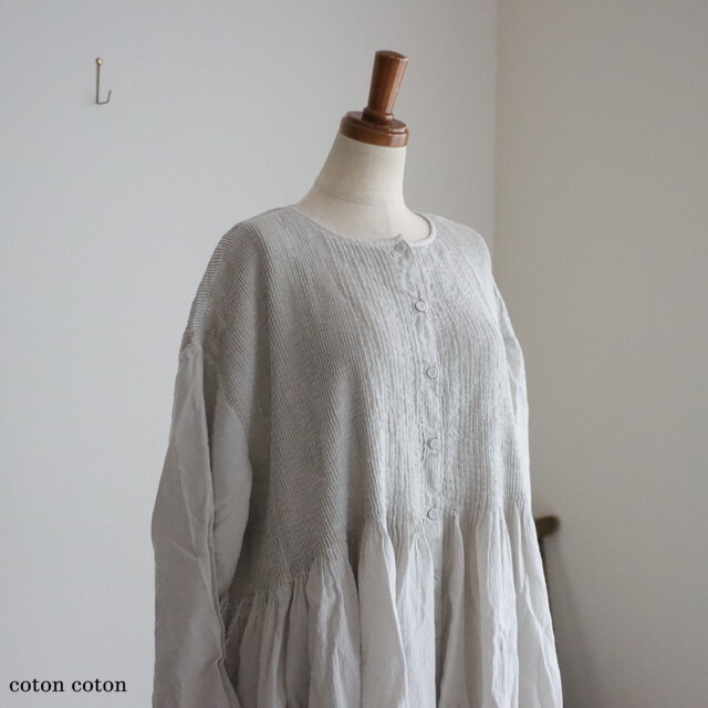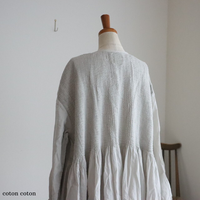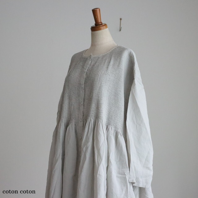 ピンタックから下はギャザーになって、ふわりと自然な落ち感がきれいです。