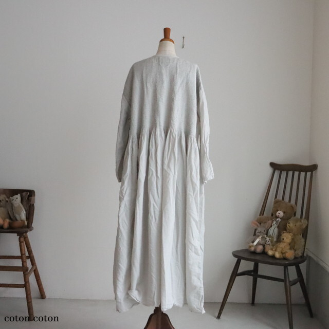 | 製品名: | 80s ORGANIC MICRO CHECK OVERDYE CREW-NECK BUTTON SHIRT MAXI DRESS WITH MINI PINTUCK |