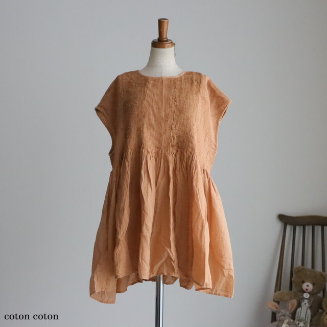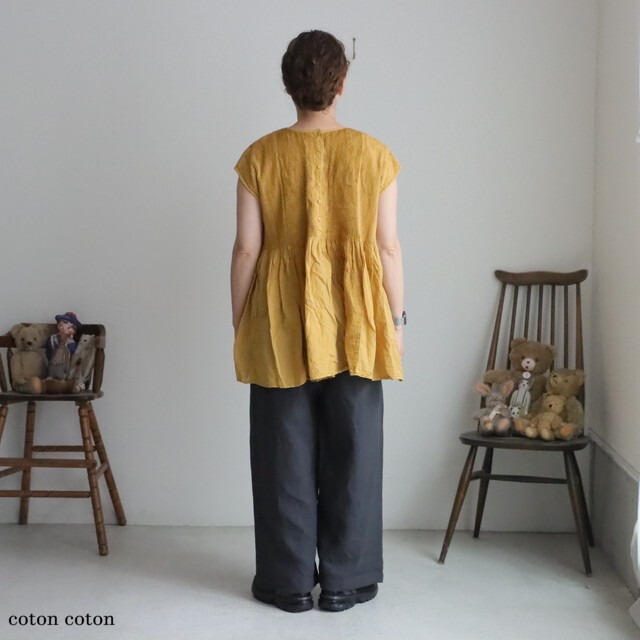 前後身頃には無数のピンタックが肩まで施され、贅沢な雰囲気。