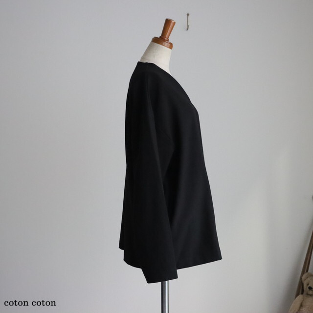 ボタンのないデザインでさっと羽織れるのも着やすい仕様です