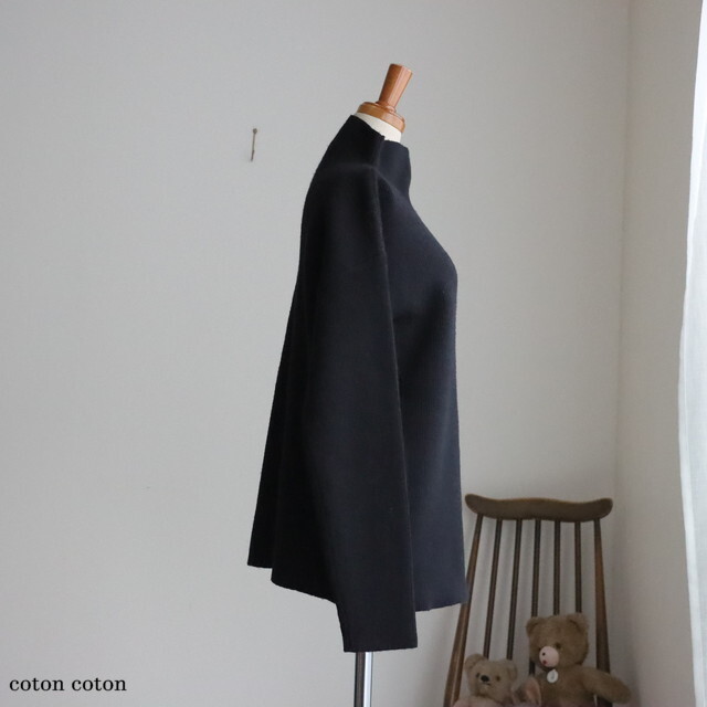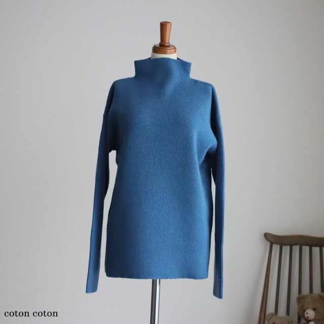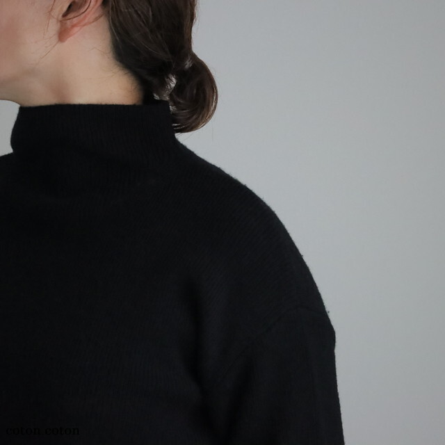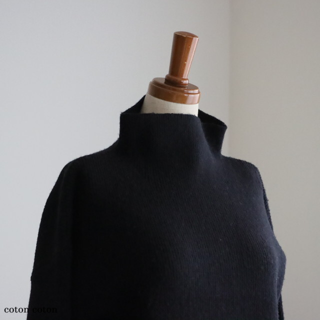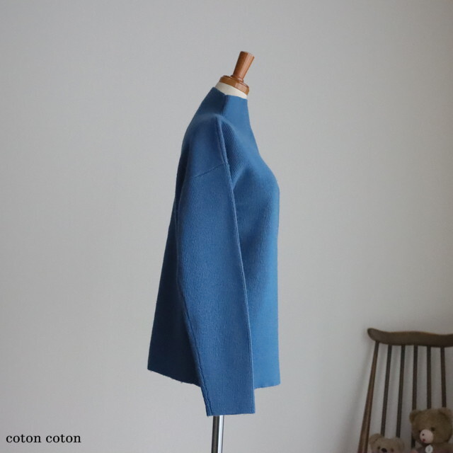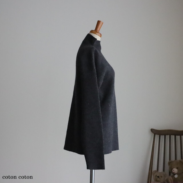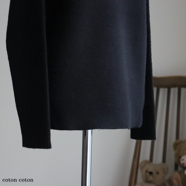 すっきりとしたシルエットでどんなスタイルにもあわせやすいニットです