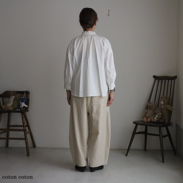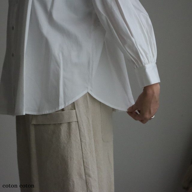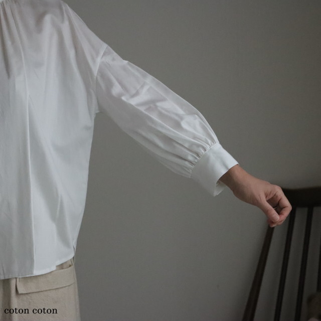 ゆったりと着ていただける身幅と、ボリューム感のある袖がかわいい印象です