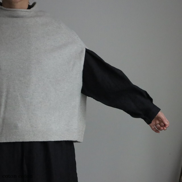 ボトルネックの襟元のたちあがりがかわいいです
