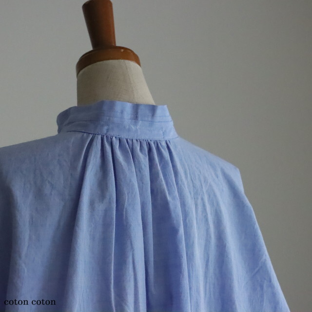 後ろ身頃と袖にギャザーを寄せて程よくゆとりを持たせながらも、フロントは比翼で仕立てすっきりとしたデザインです